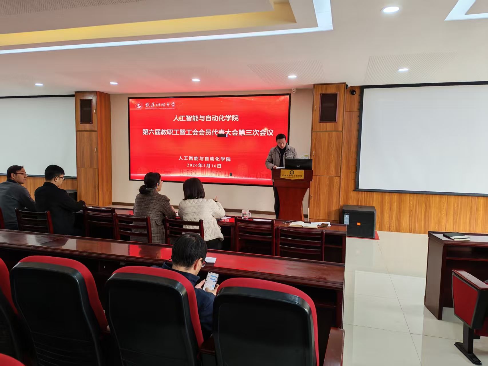 2026年1月16日下午,人工智能与自动化学院召开第六届教职工暨工会会员代表大会第三次会议。